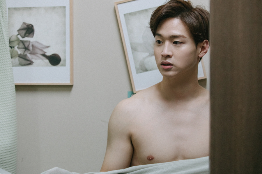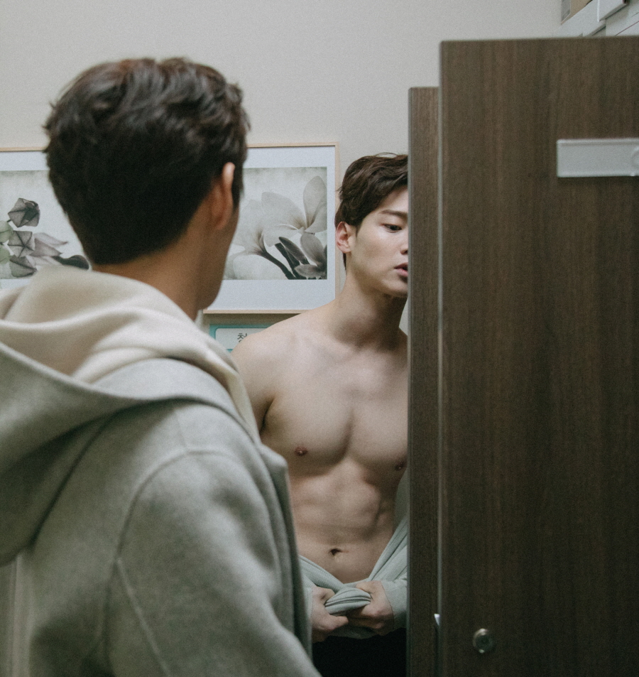 이와 관련 장동윤이 보는 것만으로도 심쿵하게 만드는 탄탄한 근육질 복근을 선보여 이목을 집중시키고 있다. 극중 실습을 끝낸 신민호가 옷을 갈아입으면서 친구인 김남우(신재하)에게 관리한 몸을 자랑하는 장면. 탈의실로 보이는 곳에서 윗옷을 벗은 장동윤은 자신감 넘치는 표정을 지어보이고 있다. 서글서글한 ‘베이비 페이스’ 속에 감춰졌던, 잘 잡힌 근육질 역삼각형 몸매를 드러낸 장동윤의 모습이 여심을 한껏 뒤흔들 전망이다.