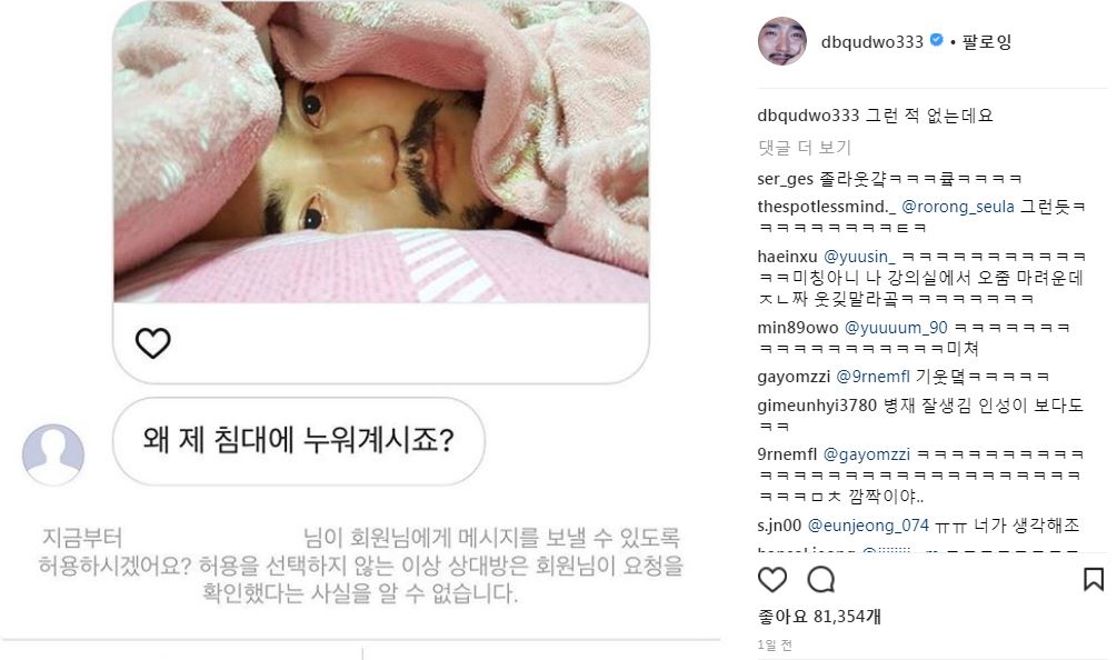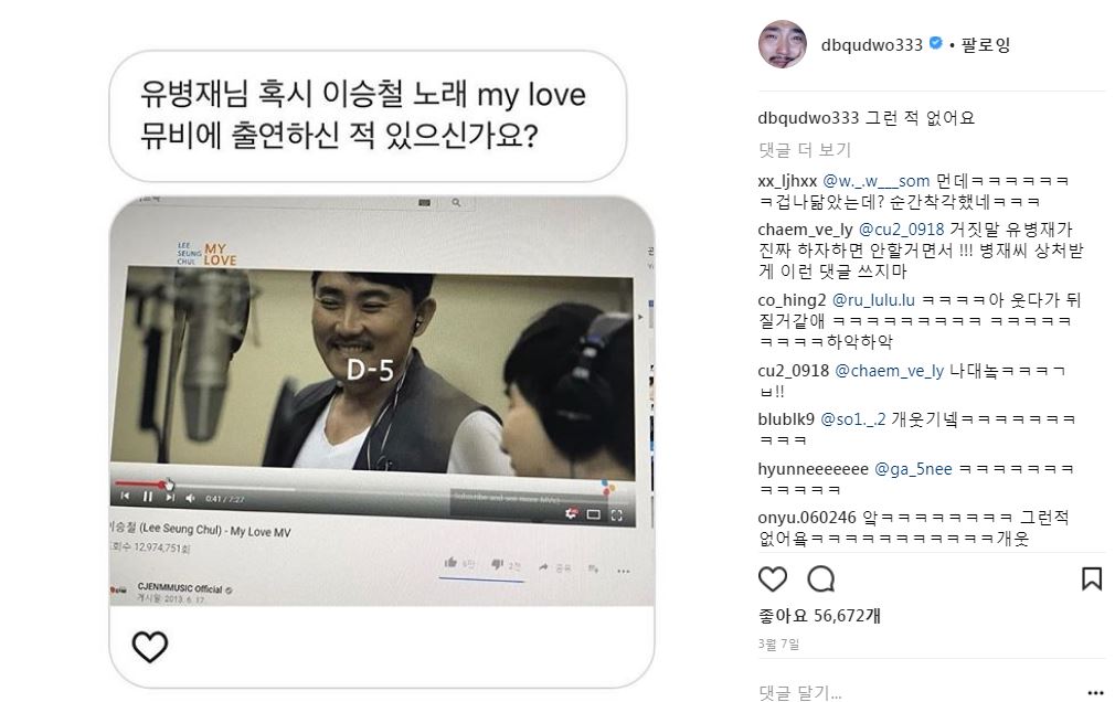 사실 요즘 유병재와 관련해서 제일 재미있는 공간은 유병재의 개인 인스타그램이다. 페이스북에서 인기를 끌었던 한두줄 명언들(젊음은 돈 주고 살 수 없어도 젊은이는 헐값에 살 수 있다고 보는 모양이다 / 듣는 순간 기분 나쁜 말, '기분 나빠하지 말고 들어' / 아프면 환자지 뭐가 청춘이냐 / 걱정거리를 통장에 넣어두고 싶다. 거기는 뭐 넣기만 하면 다 없어지던데 등등)과는 달리 인스타그램은 유병재 혼자 만든 ‘재미’들은 아니다. 유병재의 팬들이 유병재에게 보내는 웃긴 사진과 메시지들을 유병재가 캡처해서 인스타그램에 공개한다. 일종의 ‘만만하면서도 편한 연예인’이라는 유병재 이미지를 한껏 활용해 귀여워하면서도 약올리고, 놀리는 각종 메시지들을 유병재는 기분 나빠하지 않고 자기의 인스타그램 개그 소재로 활용한다.