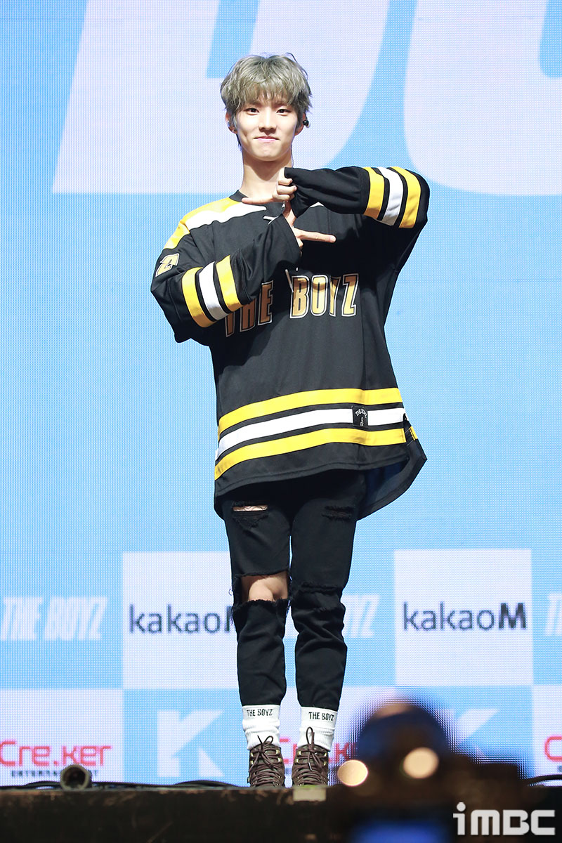 이날 쇼케이스에서 더보이즈가 포토타임을 갖고 있다.