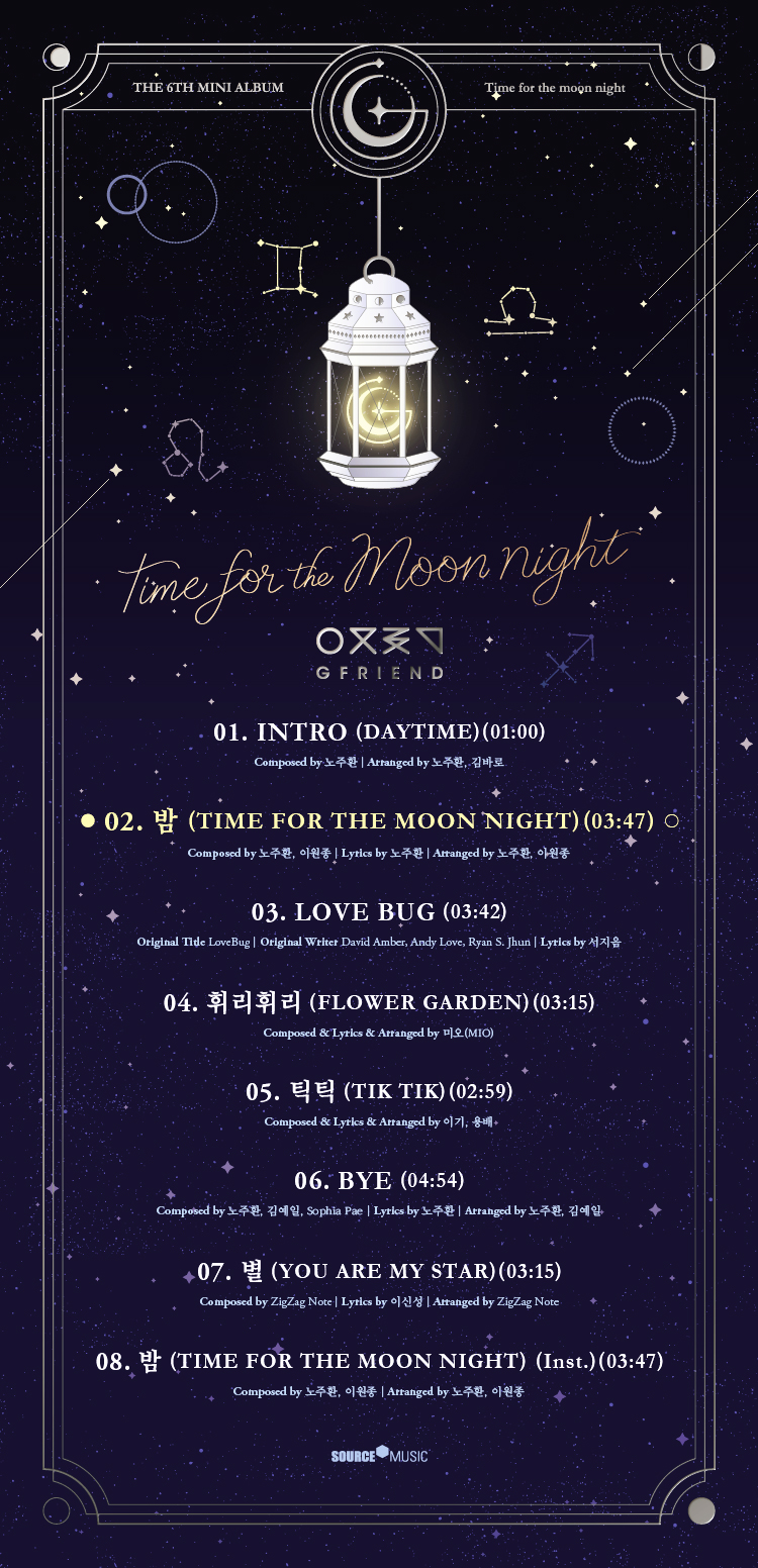 공개된 트랙리스트에 따르면 타이틀곡은 '밤(Time for the moon night)'으로 ‘달 밤을 위한 시간’, ‘달 구경 하는 시간’ 등을 뜻하는 'Time for the moon night'의 의미를 담아 사랑하는 사람을 생각하는 시간, 센치해지는 시간에 빠지는 여자친구의 소녀다운 감성을 함축적으로 담아낸 곡이다.