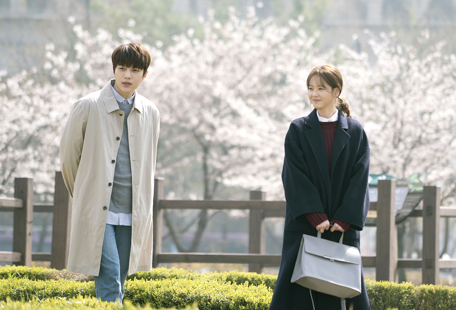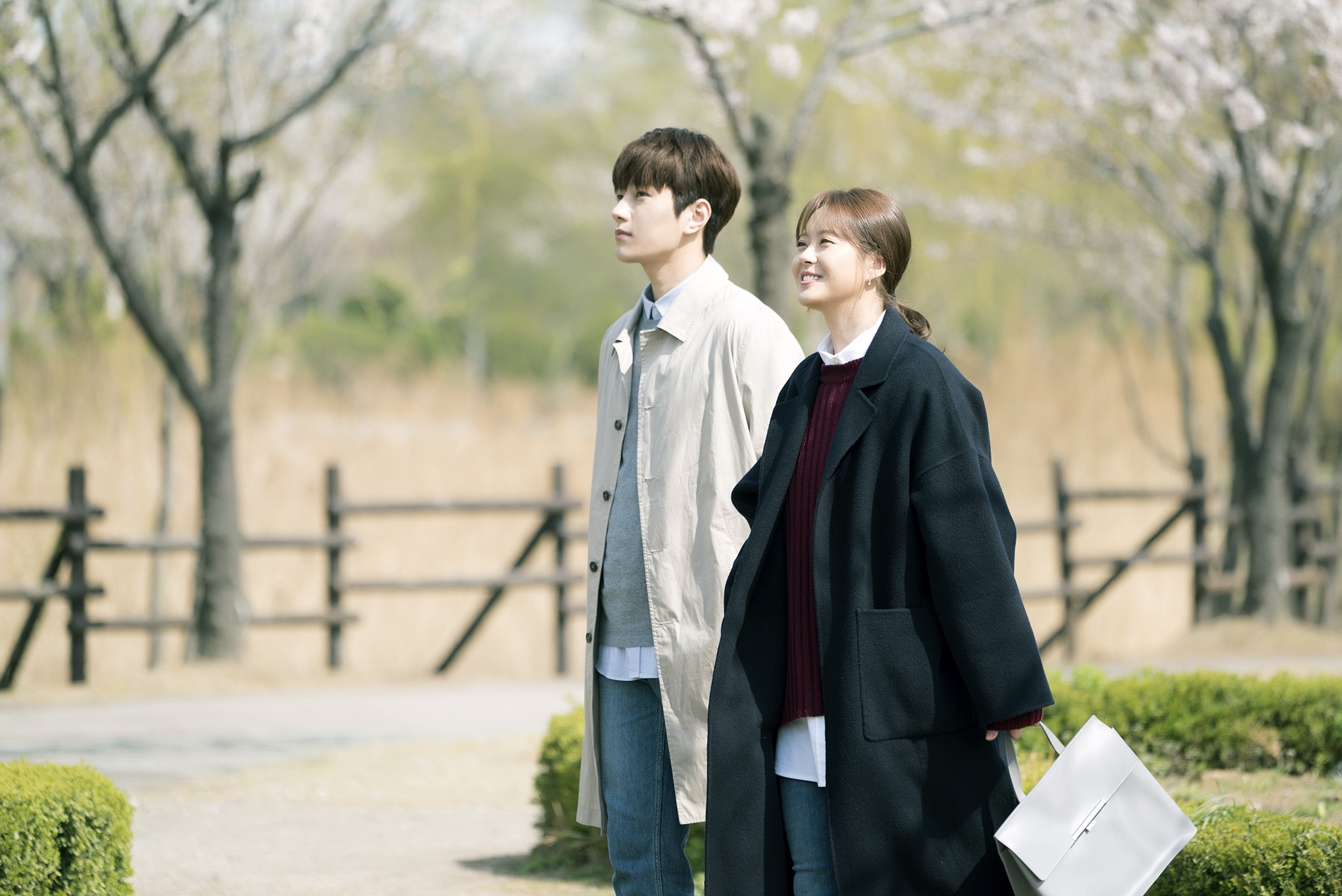 또 다른 사진 속 한복을 벗고 벚꽃 거리를 거니는 두 청춘 판사의 모습은 시선을 강탈한다. 법복을 벗어도 눈에 띄는 두 사람의 비주얼은 마치 한 폭의 그림 같다. 법원에서는 사사건건 의견을 대립했던 두 사람이지만 사진 속에서는 따뜻한 미소가 감돈다. 벤치에 나란히 앉아 조심스럽게 자신의 이야기를 전하는 박차오름과 그를 바라보는 임바른의 꿀 떨어지는 다정 눈빛이 설렘을 불러일으킨다.
