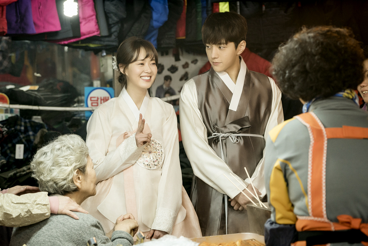 공개된 사진 속 박차오름과 임바른은 우월한 한복 자태로 꿀케미를 발산한다. 보는 이들의 광대미소를 자아내는 꽃미소부터 애교 넘치는 브이까지 세상 사랑스러운 박차오름과 달리 두 손을 가지런하게 모은 임바른의 모습에선 어색함이 폴폴 풍긴다.