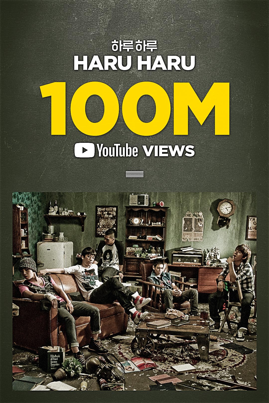 빅뱅의 ‘하루하루’는 29일 오전 4시경 공식 유튜브 뮤직비디오 조회수 1억뷰를 넘어서며 꾸준한 인기와 그 파급력을 증명했다. YG엔터테인먼트는 공식 블로그(www.yg-life.com)를 통해 ‘하루하루’ 1억뷰 돌파 기념 특별 축전 이미지를 공개했다.