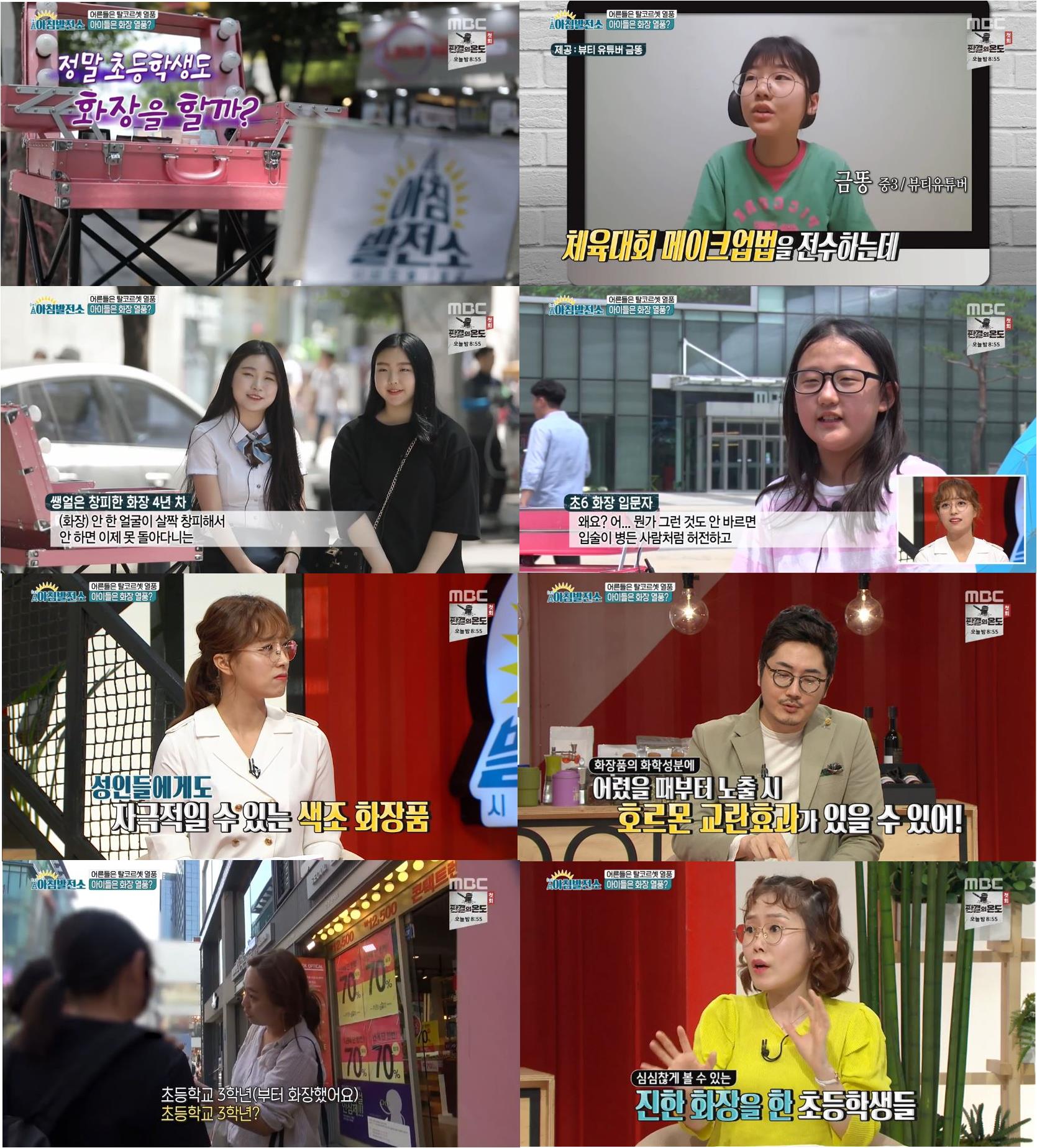 초등학교 5학년이라는 한 여학생은 화장품의 명칭을 정확하게 언급하며 실제 사용감과 그립감 등을 자연스럽게 품평하고 실제 파우치 속 화장품을 공개해 스튜디오를 술렁이게 했다. 임현주 아나운서는 “제 파우치보다 몇 배 화장품이 더 많다”며 놀라움을 금치 못했고, 박슬기 역시 “아파트에서도 진한 화장을 한 초등학생들을 자주 만난다”며 경험담을 나눴다.