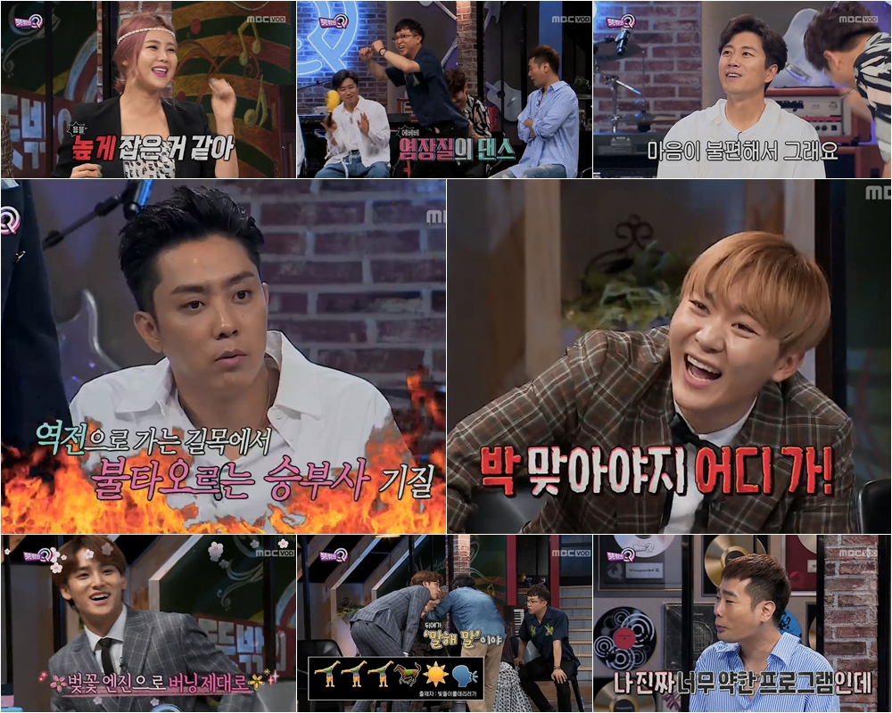 지난 23일 방송된 MBC ‘뜻밖의 Q’(기획 강영선, 연출 최행호 채현석) 8회에서는 ‘여름대비! 운동할 때 듣는 칼로리 버닝송’라는 주제로 이수근-승관(세븐틴)-솔비-박성광-민규(세븐틴)와 전현무-은지원-유세윤-장수원-뮤지가 팀을 나눠 그 어느 때보다 치열했던 퀴즈 배틀을 벌였다.