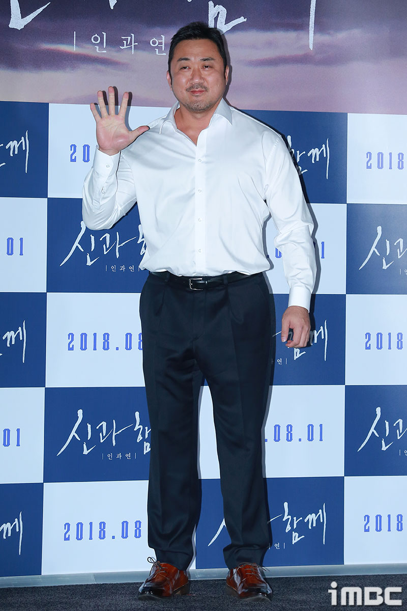 이날 행사에 참석한 배우 마동석이 포토타임을 갖고 있다.