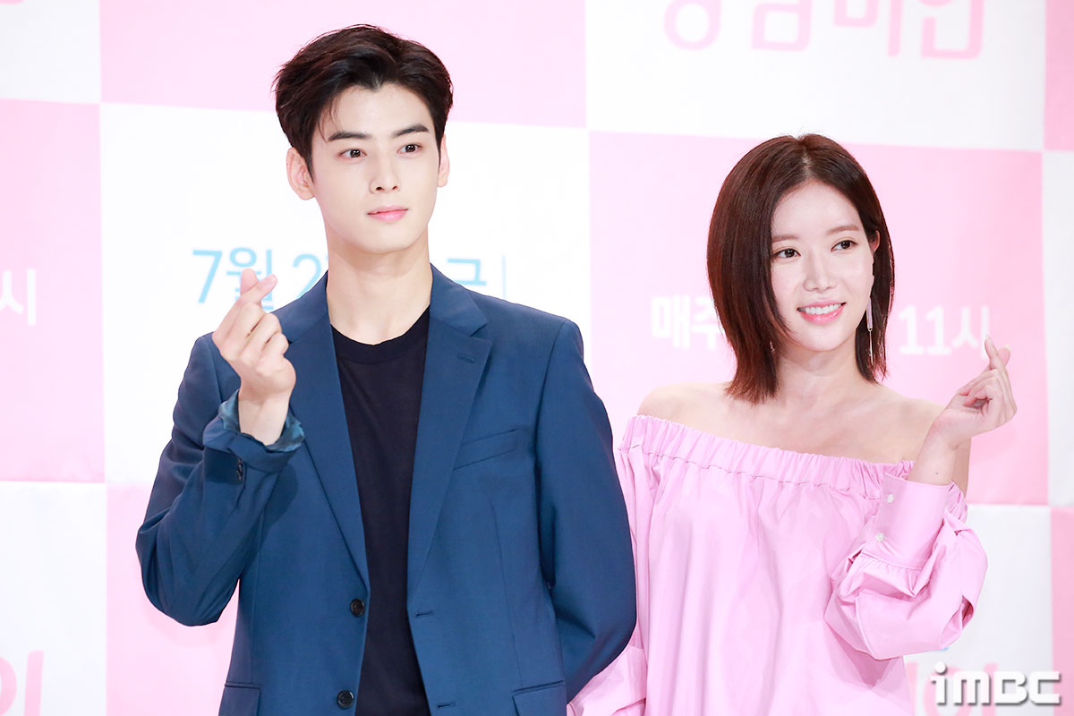 이날 행사에 참석한 배우 차은우, 임수향이 포토타임을 갖고 있다.