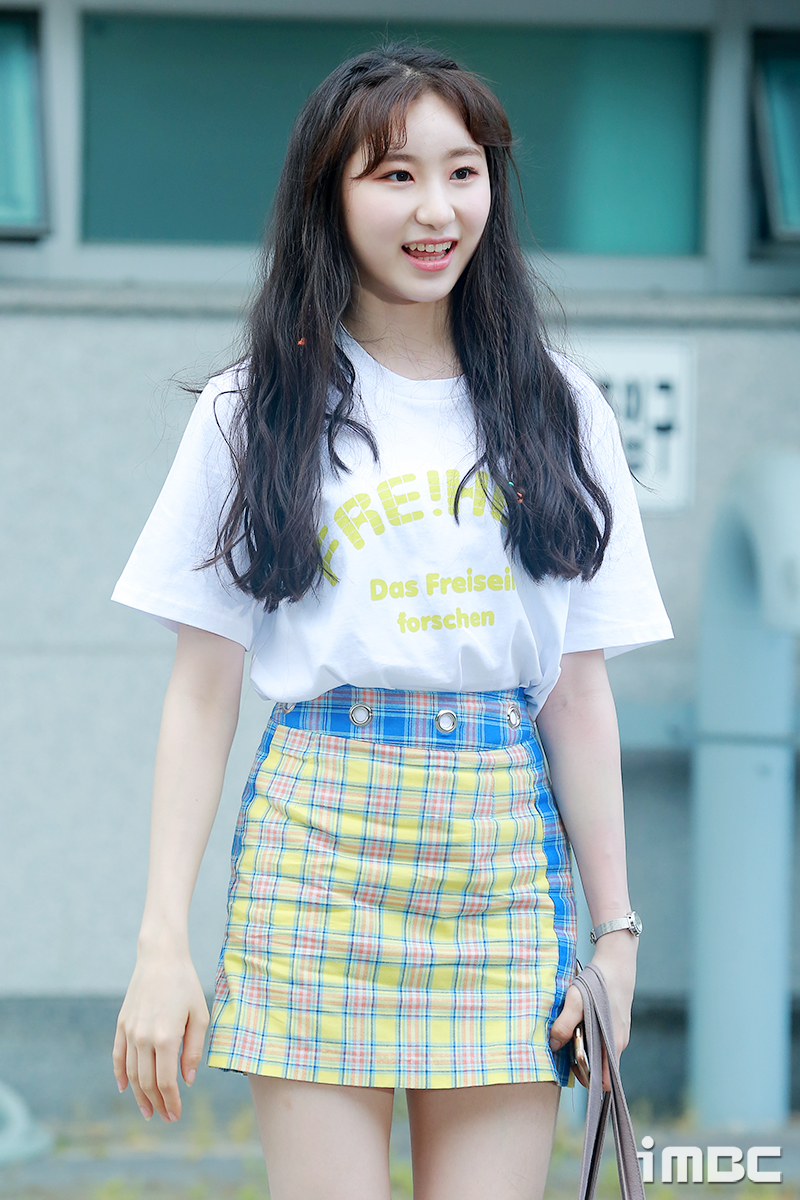 5일 오전 인천광역시 부평구 삼산체육관에서 진행된 '프로듀스48' 콘셉트평가 출근길에서 연습생 이채연이 포토타임을 갖고 있다.