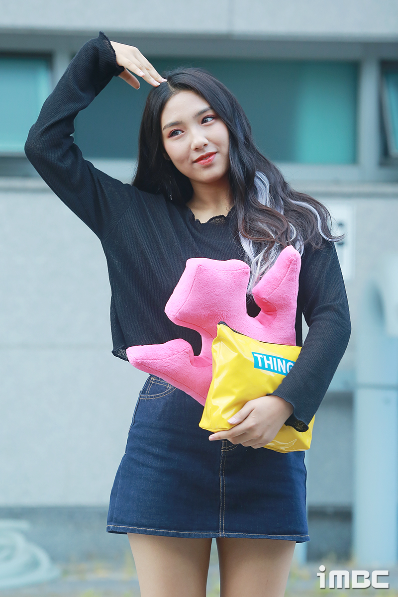 5일 오전 인천광역시 부평구 삼산체육관에서 진행된 '프로듀스48' 콘셉트평가 출근길에서 연습생 한초원이 포토타임을 갖고 있다.