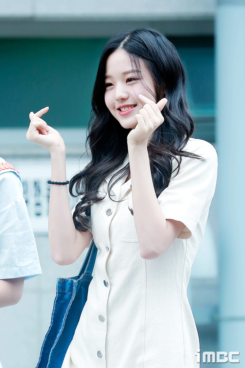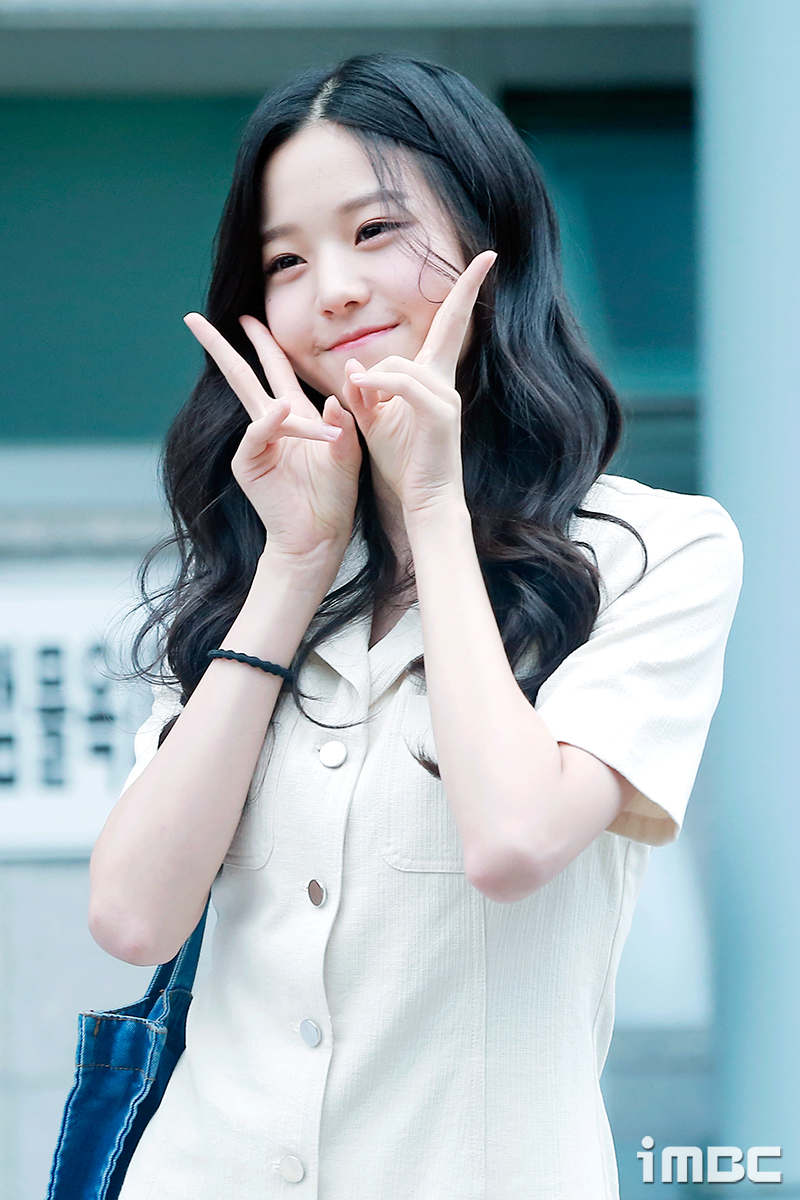 5일 오전 인천광역시 부평구 삼산체육관에서 진행된 '프로듀스48' 콘셉트평가 출근길에서 연습생 장원영이 포토타임을 갖고 있다.