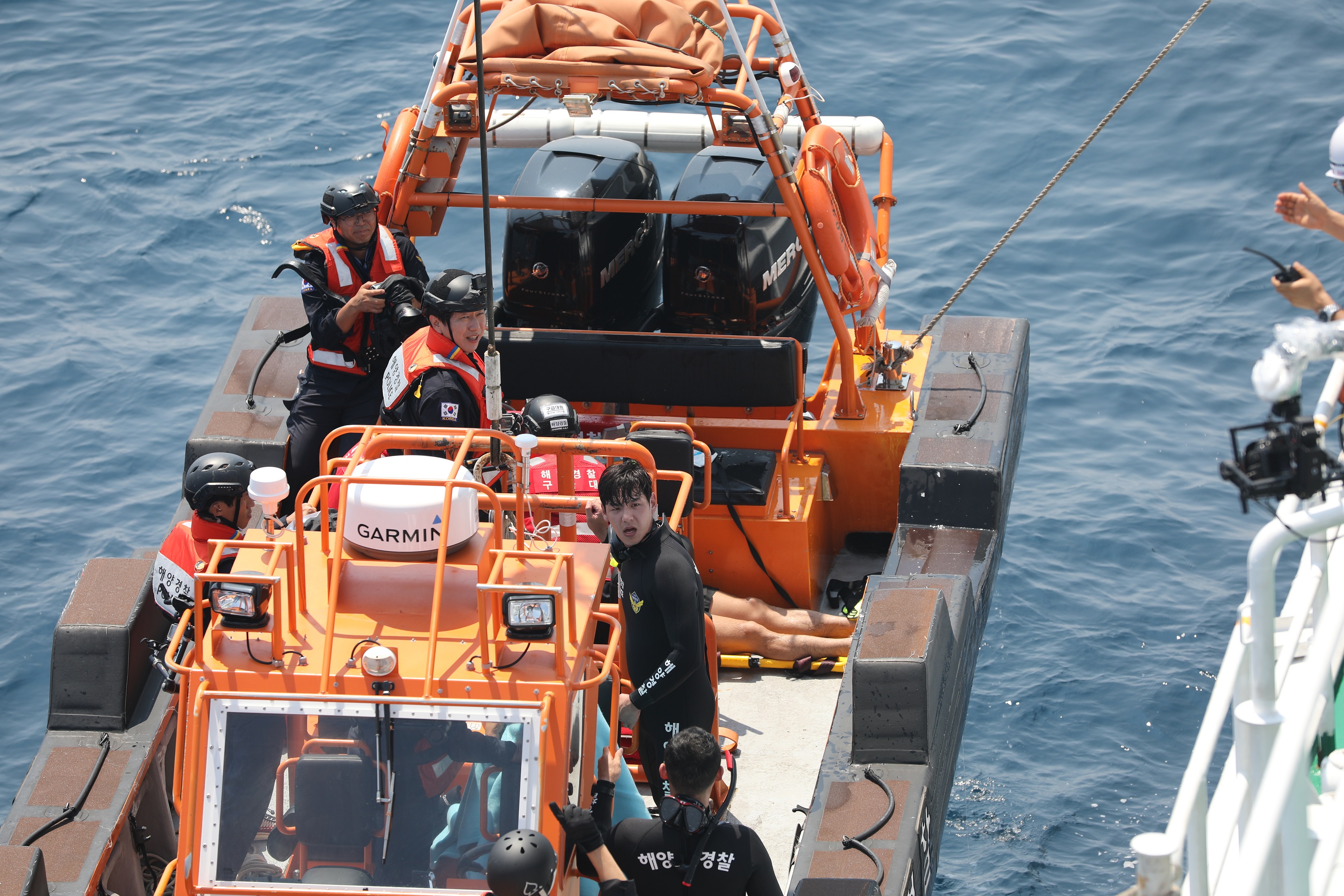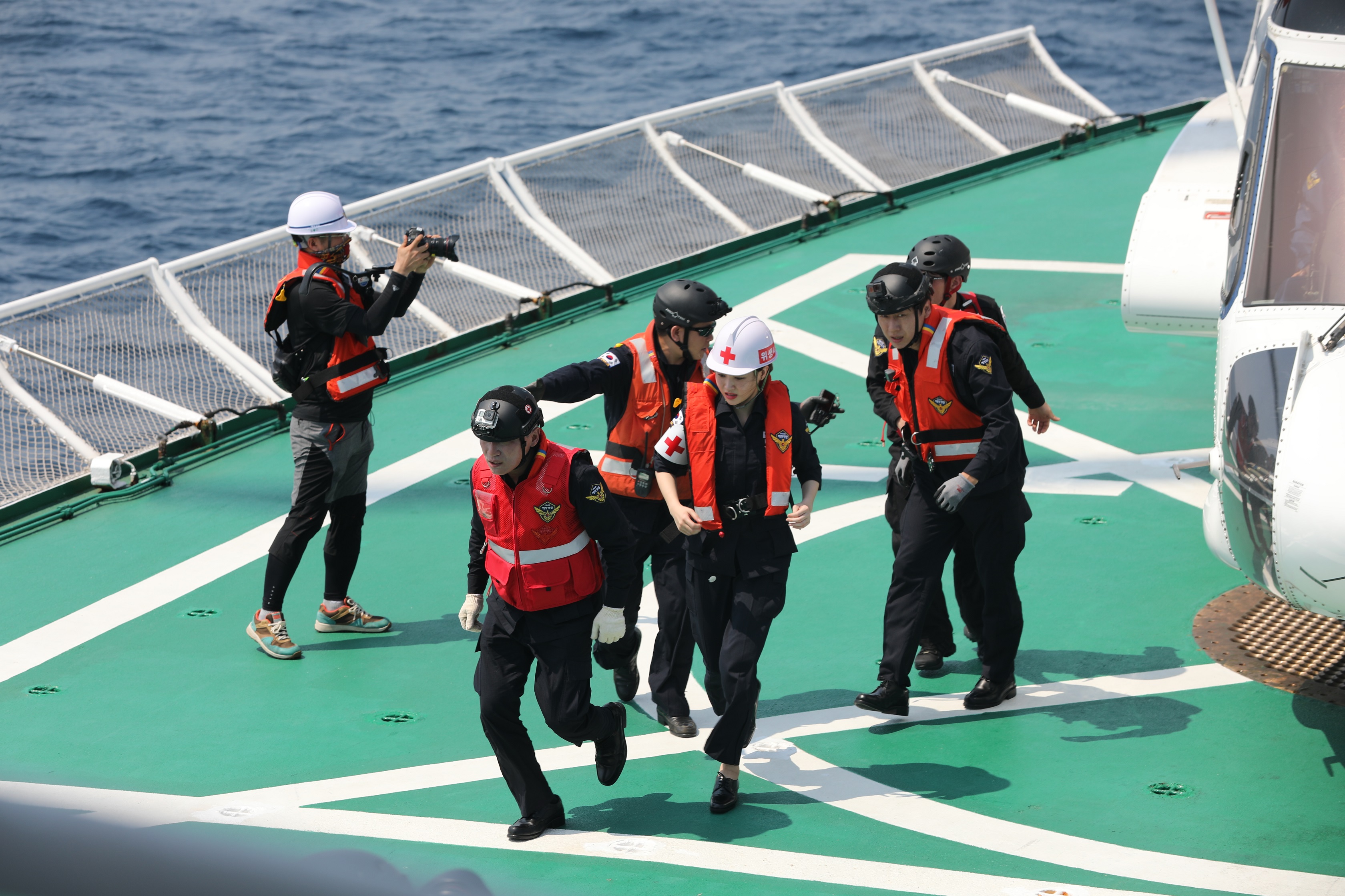 ‘바다경찰’ 멤버들은 기록적인 더위가 기승을 부리던 날임에도 진지한 태도로 해양경찰의 업무에 집중했다. 어딘가를 향해 소리를 지르고 있는 듯한 곽시양의 표정에서 급박한 상황을 짐작케 한다. 유라와 김수로는 기동복을 입고 다급하게 현장을 뛰어다니고 있다. 해양경찰이 되기 위해 동분서주하는 ‘바다경찰’ 멤버들의 노력을 엿볼 수 있다.