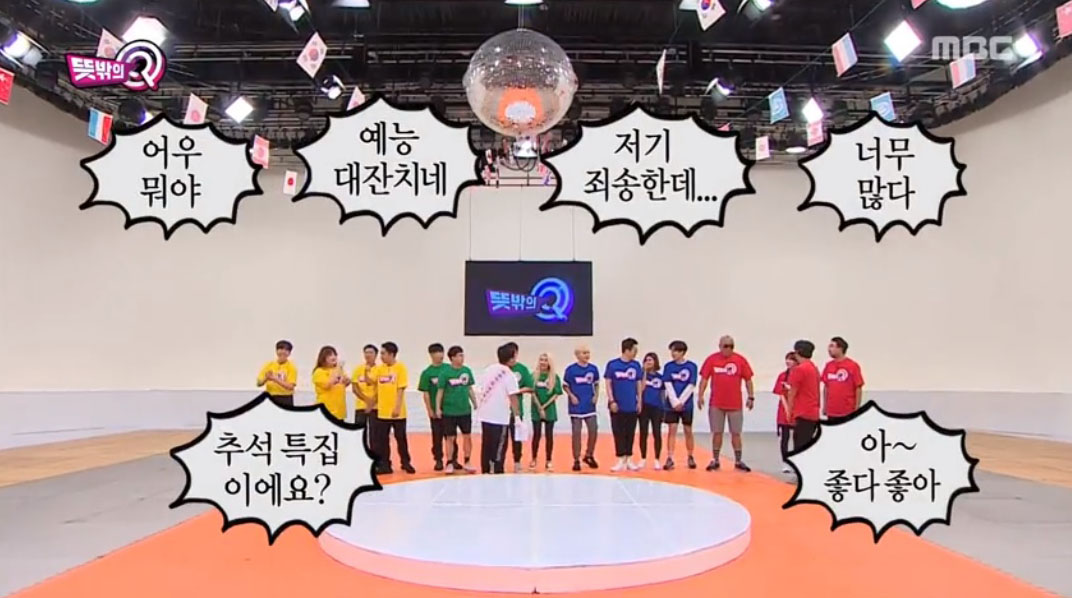 게스트들은 댄스신고식을 비롯해 4인5각 등 열심히 퀴즈를 풀었다. 이날 방송에는 박성광, 주이, 행주, 이국주, 산들, 박휘순, 케이, 지상렬, 이석훈, 솔비 등이 출연했다. MBC 주말 예능프로그램 ‘뜻밖의 Q’는 매주 토요일 저녁 6시 25분에 방송된다.