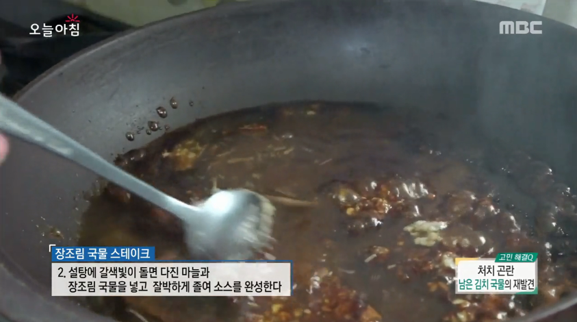 장조림 고기를 건져 먹고 남은 장조림 국물은 다진 마늘과 함께 졸여 스테이크를 굽는 데 사용했다. 시판되는 스테이크와 차별화된 감칠맛이 특징이다.