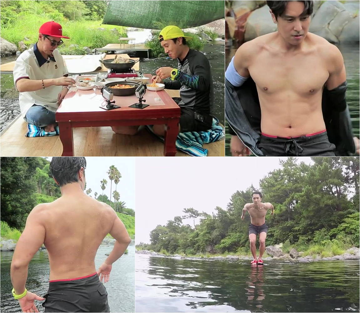 방송을 앞두고 공개된 스틸에는 신화 김동완의 초콜릿 복근과 잔뜩 성난 등근육이 담겨 있어 눈길을 끈다. 구릿빛 피부와 떡 벌어진 태평양 어깨가 먼저 시선을 사로잡는다. 또한 동심으로 돌아간 듯 물 속에서 수영을 하는 김동완의 해맑은 미소가 여심을 저격한다.