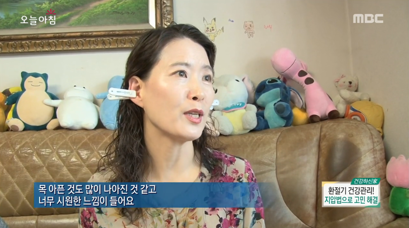 MBC ‘생방송 오늘아침’ 5일 방송에는 마사지 테라피스트 배은정이 출연해 코막힘, 목 따가움 등 감기의 대표적인 증상을 없애주는 지압법을 안내했다.