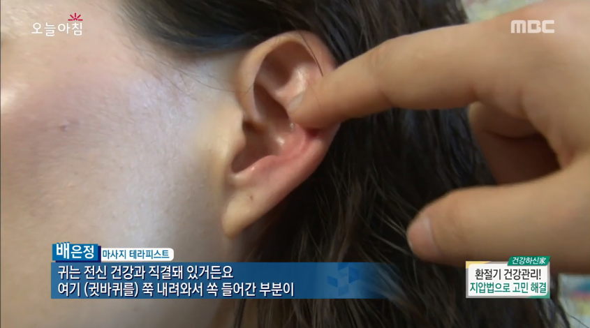 그 중에서도 특히 눈길을 끈 것은 ‘빨래집게 지압법’이었다. 배은정 테라피스트에 따르면 귓바퀴를 따라 내려오다가 쏙 들어간 부분이 코의 부비강과 목에 연결돼 있어, 이곳을 빨래집게로 집어서 강하게 지압해 주면 습관성 비염에 도움이 된다. 비염으로 고생하던 주부는 양쪽 귀를 빨래집게로 집은 뒤 “비염 증상이 확실히 좋아졌다”고 말했다.