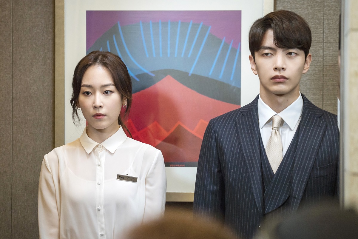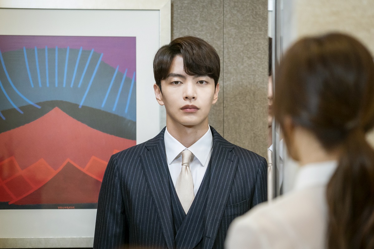 이어진 사진 속 한세계는 위장 침입 작전 2단계를 펼친다. 이번엔 블라우스에 이름표를 달고 항공사 직원으로 변신한 한세계. 연기파 배우답게 금세 단정한 직원의 모습으로 변신한 한세계의 능청 매력이 시선을 사로잡는다. 이어진 사진 속 톱스타 한세계의 등장에도 일말의 동요조차 없는 서도재의 포커페이스는 다른 의미에서 흥미를 자극한다. 엘리베이터 안에서 묵묵히 앞만 바라보는 서도재의 시크한 카리스마와 당황스러운 상황에 흔들리는 한세계의 눈빛. 결코 평범치 않은 두 사람의 만남은 묘한 긴장감을 자아내며 궁금증을 불러일으킨다.