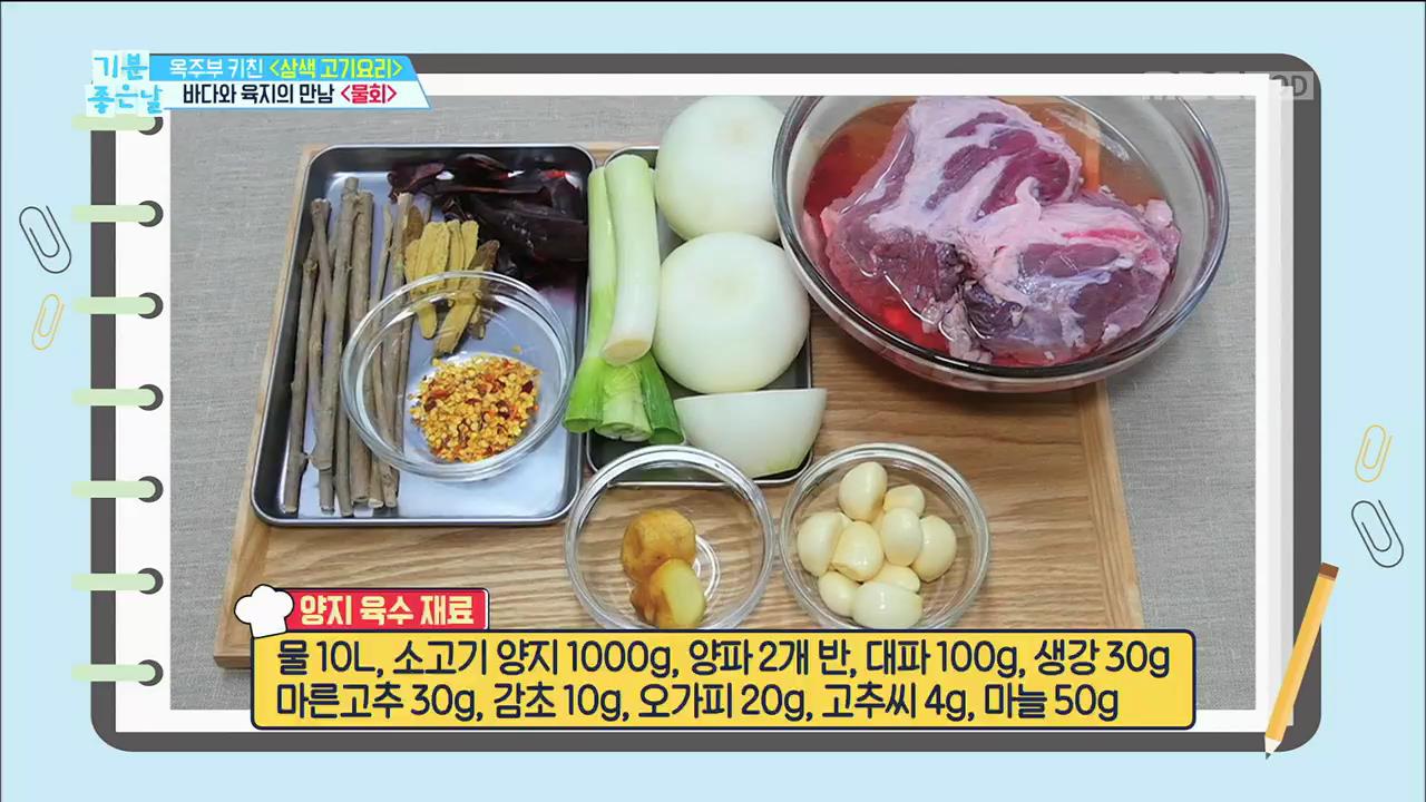 지난 8월 16일 방송된 ‘기분 좋은 날’ 2806회에서는 옥주부 정종철이 ‘육회 물회’ 만드는 방법을 소개했다.
