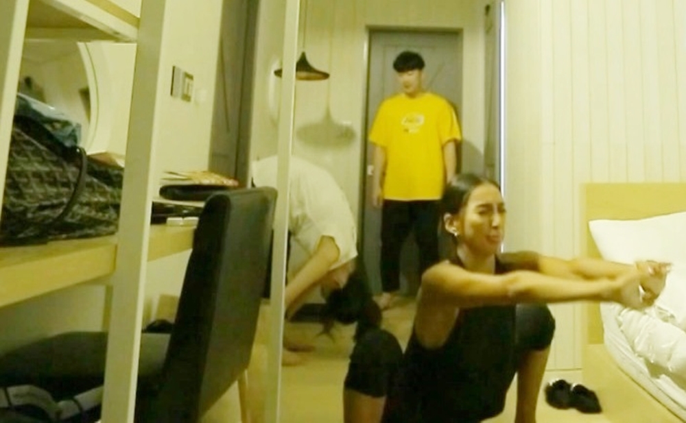 문가비는 잠자리에 들기 전 자연스럽게 몸을 풀더니 점프 스쿼트에 매진했다. 공개된 사진처럼 마치 한 마리 학처럼 유연함을 뽐낸 뒤 그녀는 자신만의 방식으로 점프와 스쿼트 연속 동작을 해나갔다. 언니와 남동생은 이를 따라 하다 지쳐버린 가운데 문가비는 이를 악물고 끝까지 해냈고 “엉덩이 펌핑됐어?”라며 운동의 효과를 확인하는 모습으로 눈길을 사로잡았다고.