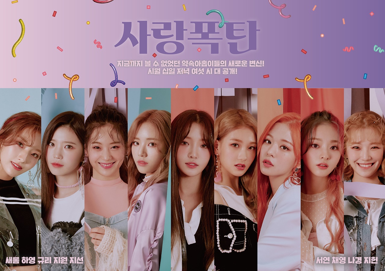 한글날 기념 포스터인 만큼 상단에는 새 스페셜 싱글 앨범 ‘From.9’ 타이틀곡 ‘러브 밤(LOVE BOMB)’을 한글로 직역한 ‘사랑폭탄’이라는 문구가 기재돼 눈길을 끈다. 그 밑으로는 ‘지금까지는 볼 수 없었던 약속아홉이들의 새로운 변신! 시월 십일 저녁 여섯시 대 공개!’라는 100% 한글 문구로 하루 뒤 발매되는 신보를 재치 있게 홍보했다.