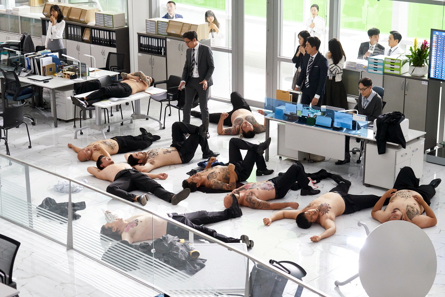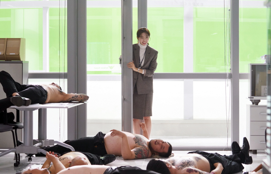이와 관련 채수빈이 ‘사고뭉치 사원’ 꼬리표를 떼고 사무실의 ‘해결사’로 똑 부러지게 활약하는 ‘조폭 대면’ 현장이 공개된 것. 극중 온 몸에 문신을 한 조폭들이 교통서비스팀장 이우택(장재성) 앞으로 다가와 바닥에 드러누운 가운데, 사무실에 막 들어온 한여름이 조폭들과 마주하는 장면이다. 다소 무서운 인상의 조폭들과 만난 한여름은 이들의 ‘돌발 행동’에 겁을 내기는커녕 ‘꽃미소’를 뿌리며 반갑게 인사를 나누고 있어 전말에 시선이 모인다.