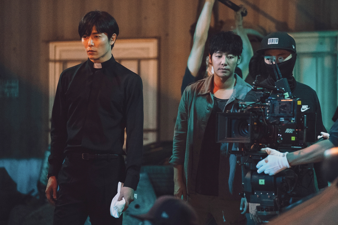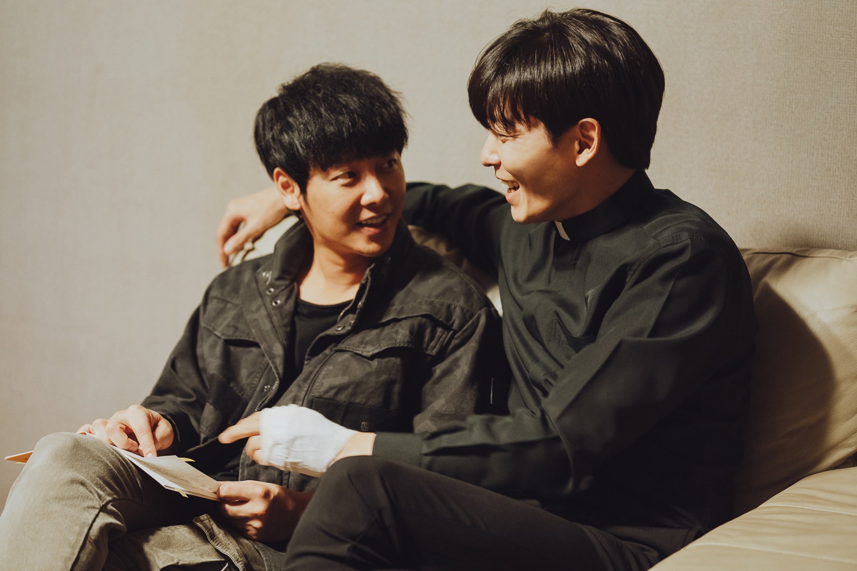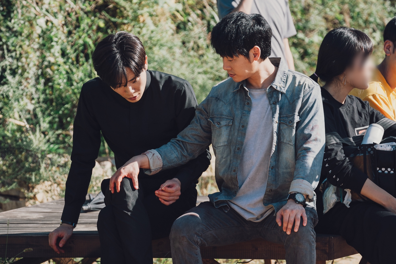 OCN 수목 오리지널 ‘손 the guest’(연출 김홍선, 극본 권소라 서재원, 제작 스튜디오드래곤) 측은 14일 현장에서도 꿀케미가 넘치는 김동욱과 김재욱의 현장 비하인드 사진을 공개했다.
