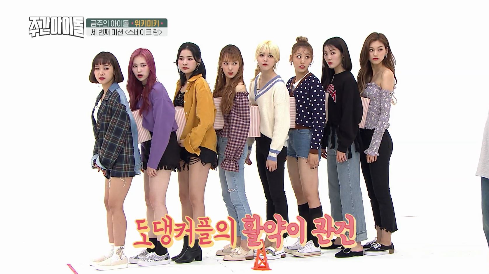 두 번째 급성장돌 그룹으로, 7개월 만에 신곡 ‘Crush’로 컴백한 위키미키가 ‘금주의 아이돌’로 돌아왔다. 이날 위키미키는 주간아이돌 NEW 애교 ‘내꼬해♡’를 위키미키의 팬 ‘키링’ 맞춤 버전 ‘니꼬해♡’로 개사해 애교를 선보였다.