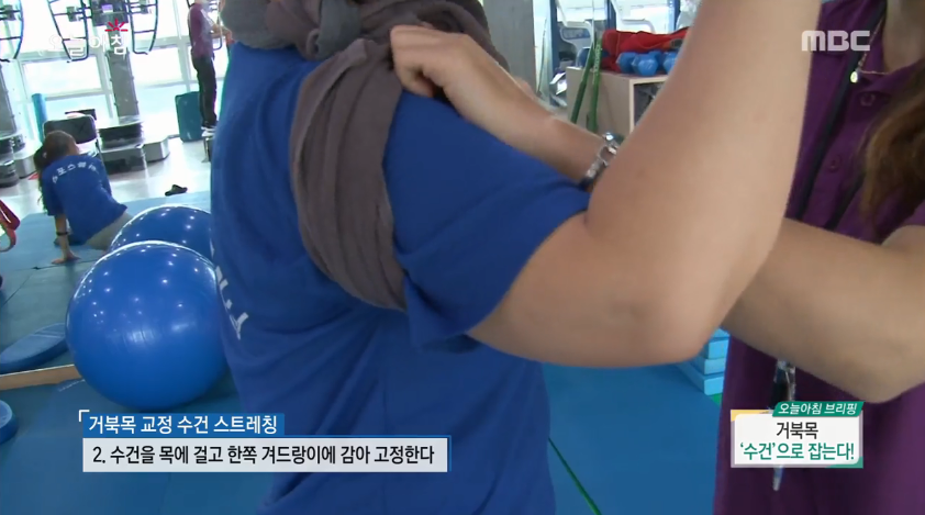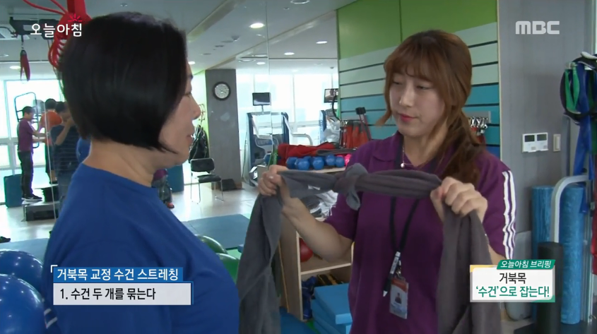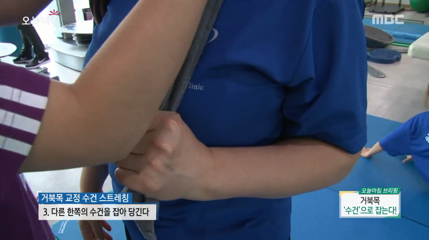 9일 MBC ‘생방송 오늘아침’에는 박정민 재활 트레이너가 등장해 거북목을 교정해 주는 간단한 수건 스트레칭 동작을 직접 보여줬다. 어느 집에나 있는 수건 2장만 있으면 쉽게 할 수 있는 동작이다. 방법은 다음과 같다.