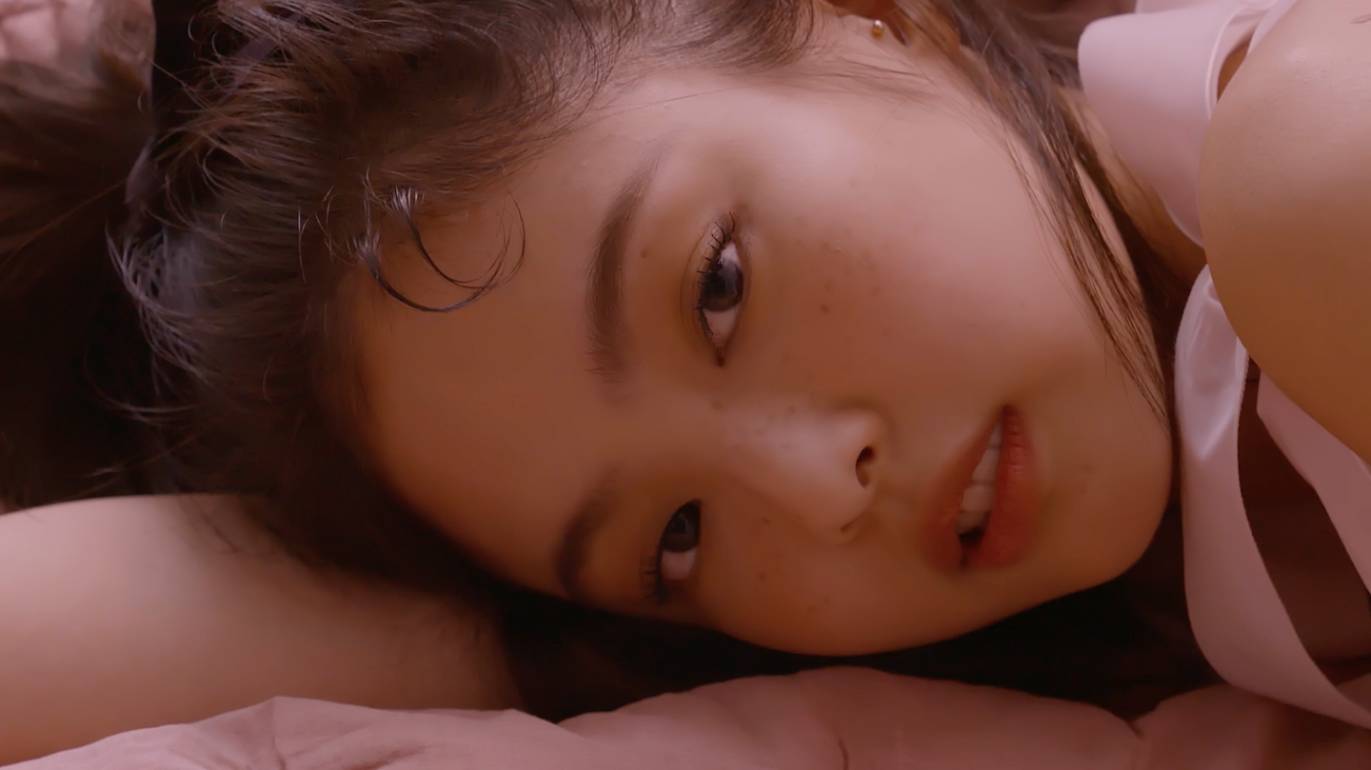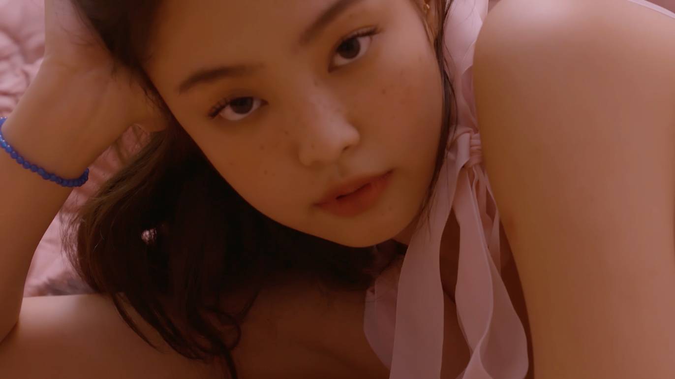 침대에 누워 자신의 이름 한 글자 한 글자를 속삭이고 있는 제니는 몽환적인 분위기를 자아낸다. 또, 사춘기 소녀 같은 앳된 비주얼과 주근깨로 사랑스러움을 배가시킨다.
