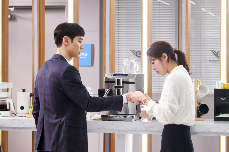 ‘웨어러블 괴력팔’에 대한 비밀을 숨기기 위해 공항에서 조용히 일해오던 ‘신입 사수’ 이수연은 ‘선배 후임’ 한여름과 언쟁을 벌인 후 탕비실에서 화해를 나눴다. 이때 뜨거운 물이 담긴 컵라면이 이수연의 손에 쏟아지자, 한여름이 이수연의 손을 붙잡고 어쩔 줄 몰라 했던 상황. 손을 ‘덥석’ 잡은 채 이수연을 걱정하는 한여름에게 이수연은 “통증을 느끼지 못한다”고 고백하며 마음의 문을 처음 열었다. 이후로도 뜨거운 라떼 잔을 붙잡고 있는 이수연의 무통증 손을 ‘쓰담’하며 세심히 살펴보는 한여름의 진심 어린 모습에, 얼음 같았던 이수연의 마음이 움직이기 시작했다.