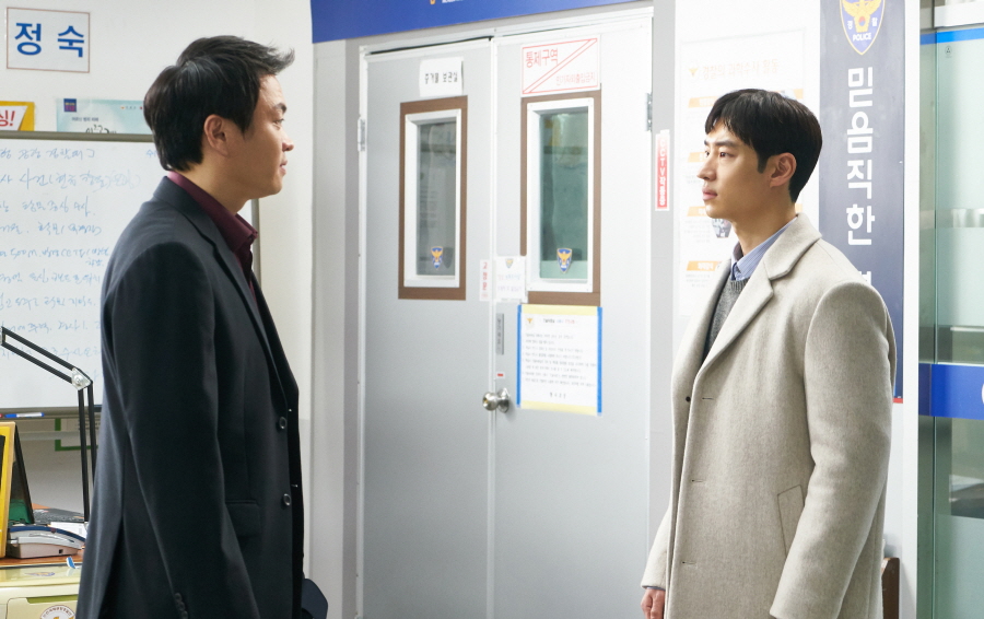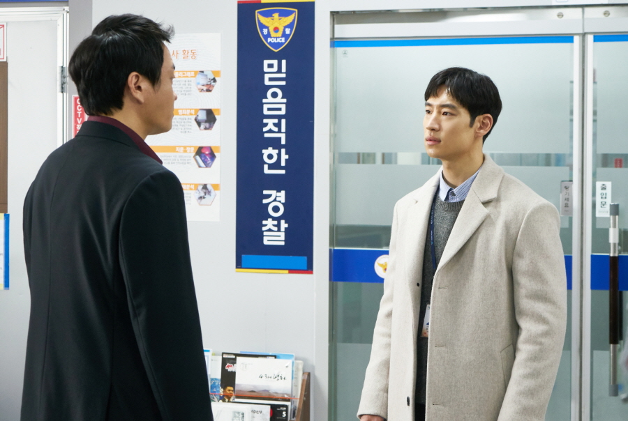 이와 관련 이제훈이 보안팀장 이성욱에게 또 다시 강도 높은 추궁을 받는 ‘정면 응시 기 싸움’ 현장이 공개돼 이목을 집중시키고 있다. 경찰서 안에서 대면하게 된 두 사람이 한 치도 밀리지 않는 ‘핑퐁 대화’를 주고받다, 서로를 빤히 마주보며 포스를 폭발시키는 장면. 이수연은 최무자를 ‘쎄한 눈빛’으로 대하고, 최무자는 무언가를 알고 있다는 듯 ‘매의 눈’을 드리우는, 심상찮은 상황이 조성된다.