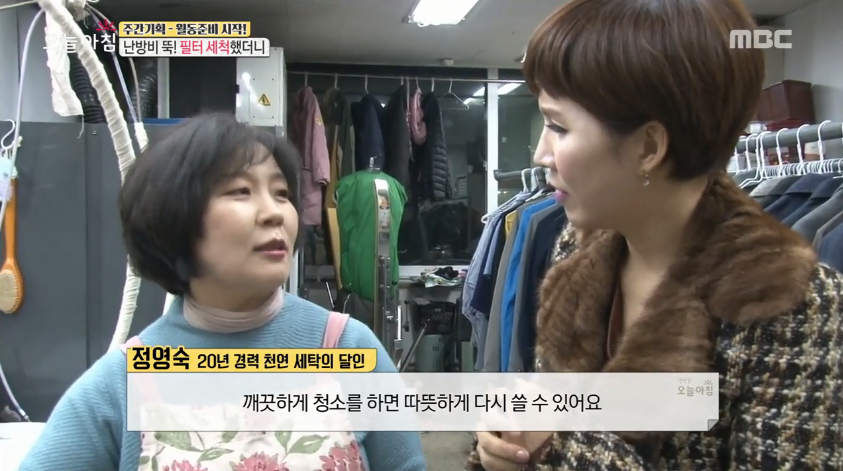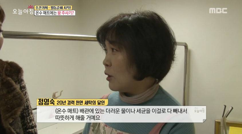 천연 세탁 달인 정영숙 씨는 “배관 안의 각종 노폐물과 잡균을 제거하면 따뜻하게 온수매트를 쓸 수 있다”고 말했고, 실제로 소비전력 측정을 해 보니 청소한 온수매트는 효율이 10%나 좋아졌다.