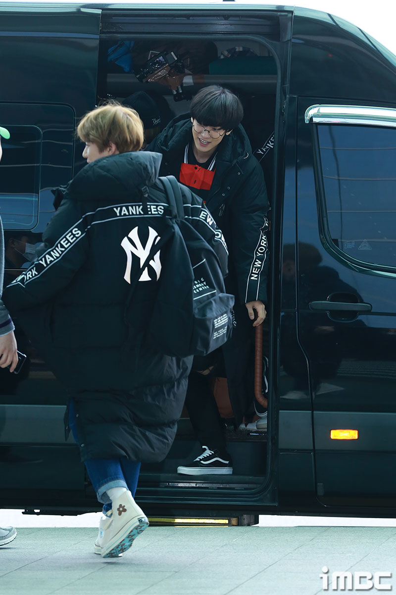 보이그룹 엑소가 19일 오전 일정 차 대만으로 출국하기 위해 인천공항 제 2터미널로 들어서고 있다.