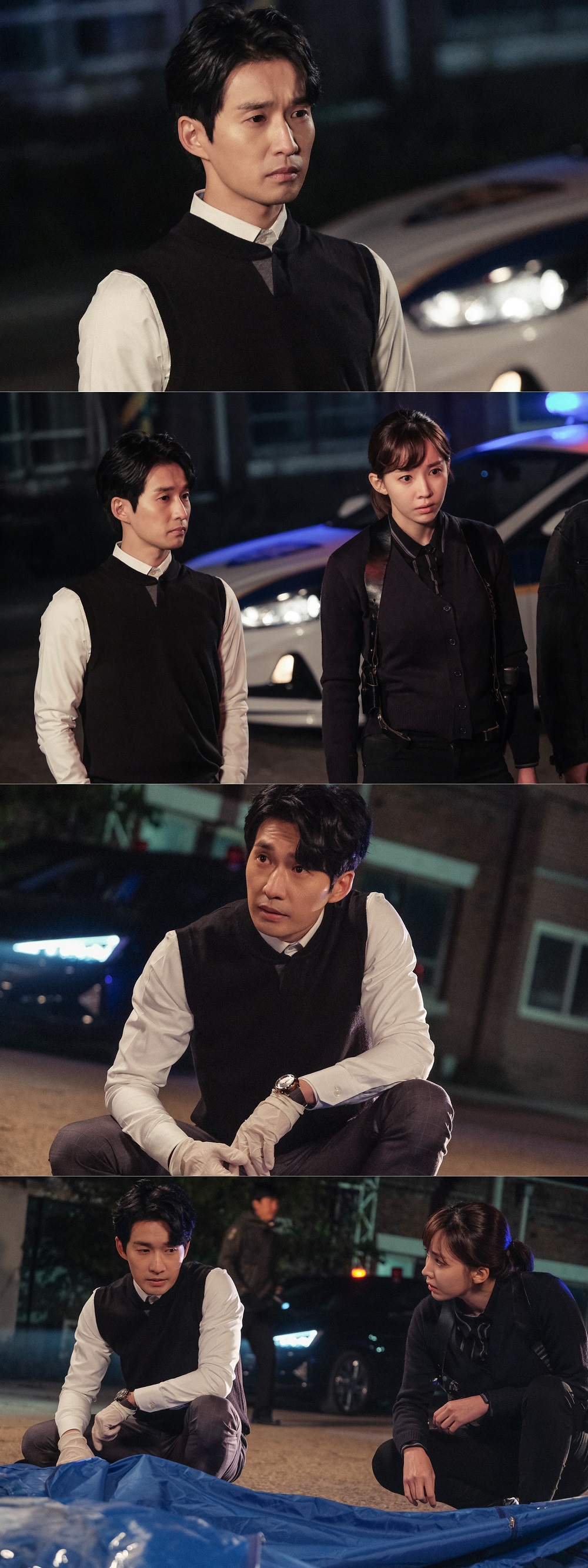공개된 사진 속 사건 현장을 살펴보는 한진우와 강경희의 날카로운 아우라가 시선을 사로잡는다. 초진지 눈빛을 장착한 한진우는 사건의 진실에 다가서기 위해 깊이 생각에 잠긴 모습. 강경희 역시 카리스마를 발산하며 현장에 집중한다. 현장에서 수습된 시신을 살펴보는 두 사람 사이에 심각한 분위기가 감돈다. 예리한 레이더를 세우던 한진우의 얼굴에 스치는 긴장감이 범상치 않은 사건의 서막을 예고하며 궁금증을 자극한다.
