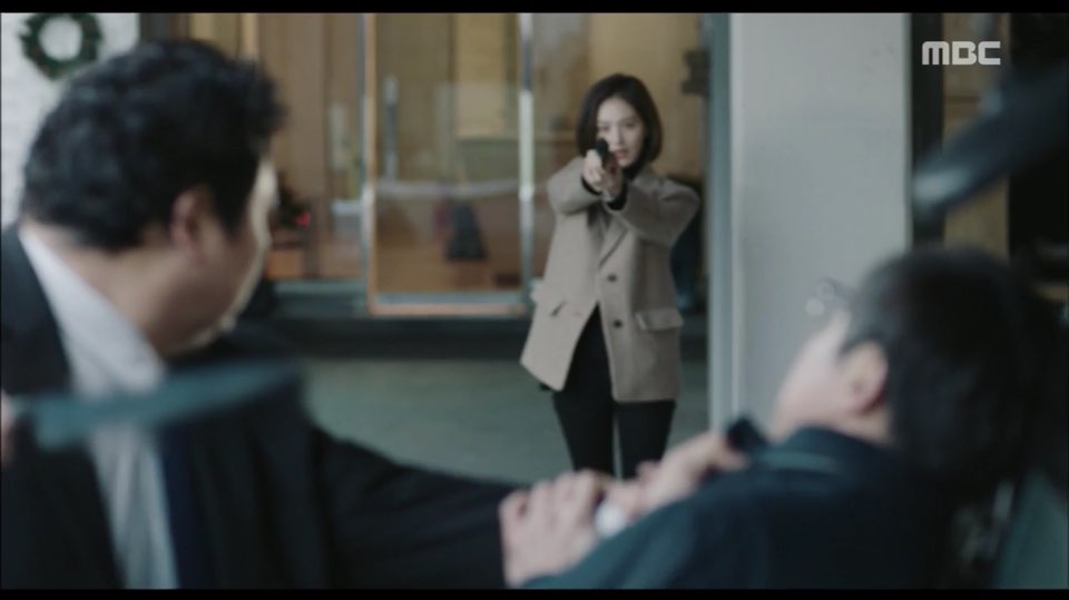 26일 방송된 MBC 월화드라마 '배드파파'에서는 차지우(김재경)의 긴박한 총격전이 방송됐다.