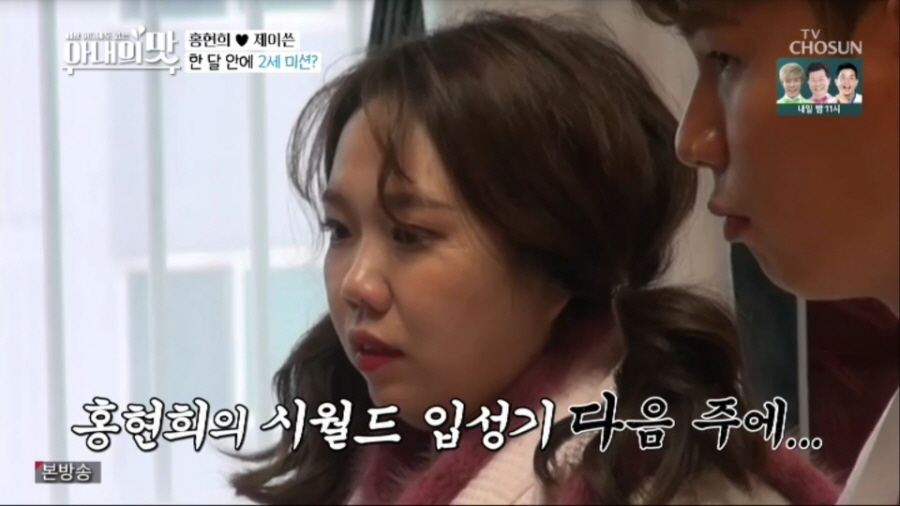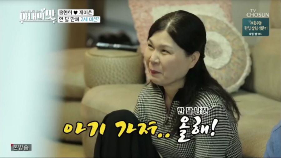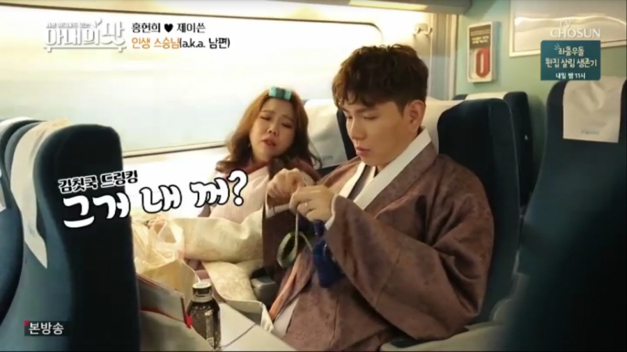 이후 한복을 곱게 차려입은 홍제 부부는 결혼 후 첫 시댁 인사를 위해 기차에 올랐다. 하지만 이 순간에도 홍현희는 김밥과 간식으로 먹방을 이어갔고, 제이쓴은 옆에서 조용히 뜨개질을 하는 상반된 자태를 보였다. 더욱이 시댁에 도착한 홍현희는 시부모님께 절을 올리기 위해 부랴부랴 버선을 신다 넘어지는가 하면, 절을 한 후 일어나지 못하는 웃픈 상황을 연출했다. 심지어 어렵게 아들 부부의 첫인사를 받은 후 며느리의 편을 들어주며 덕담을 건네던 시어머니가 갑자기 “아기 가져. 올해”라는 손자에 대한 기대를 내비치면서, 홍현희와 제이쓴을 당황하게 만들었다.