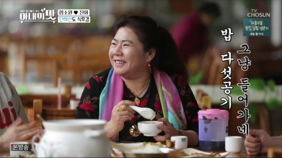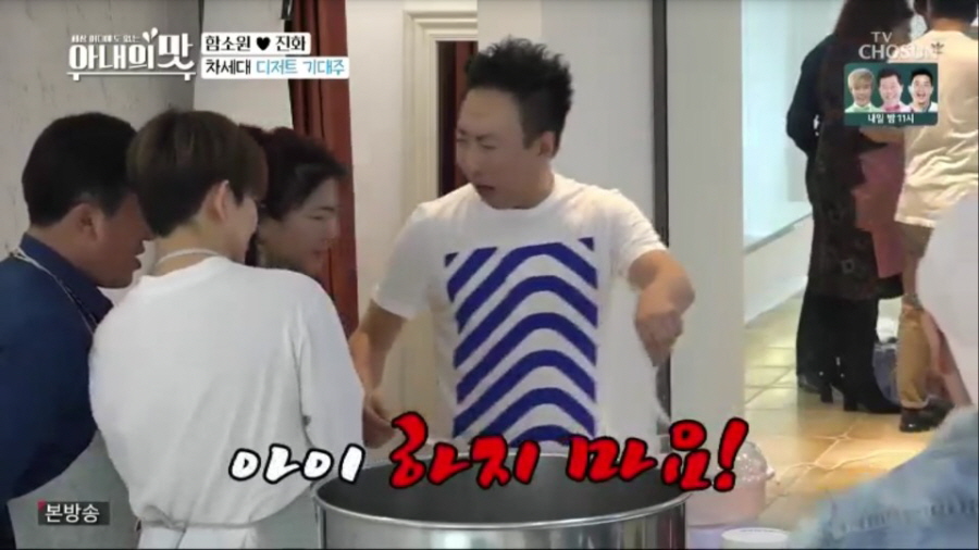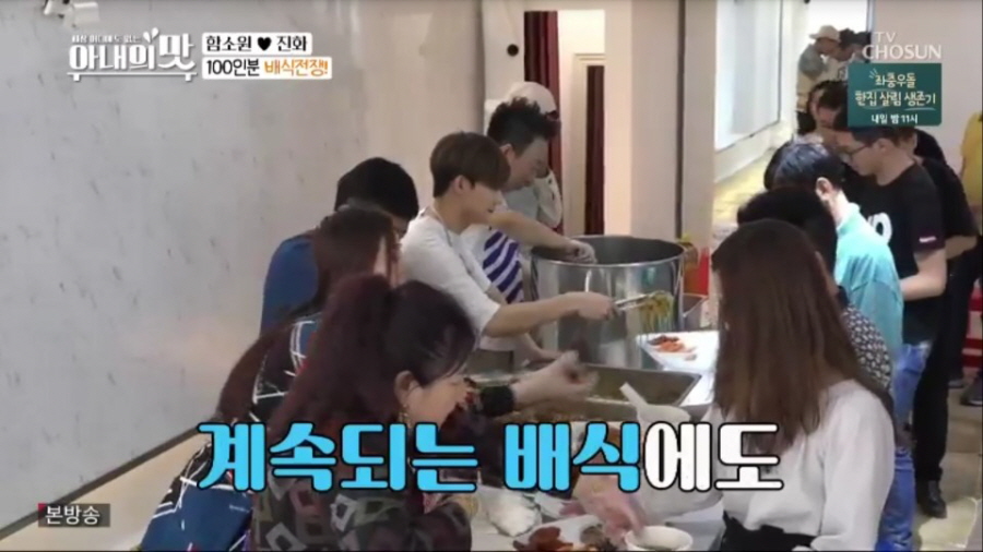 지난 27일(화) 밤 10시 방송된 TV CHOSUN 예능 프로그램 ‘세상 어디에도 없는, 아내의 맛’(이하 ‘아내의 맛’) 25회분은 주방기계 마니아 안상훈의 주도로 소시지 만들기에 나선 ‘서안 부부’, 신혼의 깨소금과 웃음이 끊이지 않았던 ‘홍제부부’, 2MC와 100인분 배식에 이어 단하산 여행에 나선 ‘함진 패밀리’의 모습이 담기면서 안방극장을 훈훈함으로 채웠다.