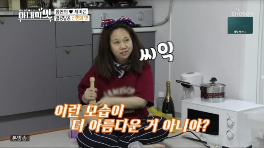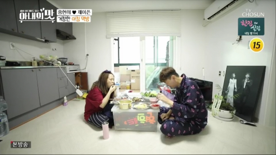 이날 방송에서는 결혼 3주 차 개그우먼 홍현희와 실내 디자이너 제이쓴 부부의 신혼 생활도 처음으로 공개됐다. 연애 6개월 만에 결혼식을 올린 4살 연상연하 홍제 부부는 달달한 신혼을 보내고 있을 거라는 모두의 예상을 뒤집는, 무드 제로 충격적인 비주얼로 등장했다. 이어 덜 꾸며진 인테리어로 인해 황량하기까지 한 신혼집에서 호텔식 조식을 만들어주겠다며 팔을 걷어붙인 홍현희는 바닥에 신문지를 깔고 버너에 불을 붙인 채 불고기 요리를 시작했고, 홍현희를 본 제이쓴은 “귀여워, 포비 같아”라며 닭살 애정을 드러냈다. 마침내 아침 밥상 위에 불고기와 콩나물국, 밥과 반찬이 수북이 담긴 식판이 올랐지만, 자신의 요리에 감탄하며 쌈까지 싸 먹는 홍현희와 달리 정작 제이쓴은 아침에 한식을 잘 안 먹는다는 이유로 시리얼을 먹는 모습으로 웃음을 자아냈다.