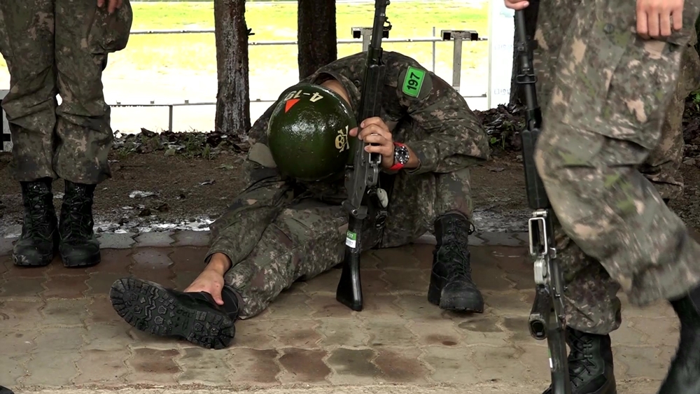 이어 공개된 사진 속 박재민이 자리에 주저앉아있어 시선을 강탈한다. ‘영점 사격’을 마친 그는 잔뜩 찡그린 얼굴로 “죽겠습니다”라며 극심한 통증을 호소했다고 전해져 관심을 집중시킨다. 특히 고통을 참으려는 듯 고개를 숙이고 잔뜩 웅크린 모습은 지금까지 불꽃 열정을 보여준 박재민의 모습과는 상반돼 걱정을 불러일으킨다. 실제 현장에서 교관은 물론 동기들의 걱정을 한 몸에 받았다는 후문이어서 더욱 관심이 커지고 있는 상황.