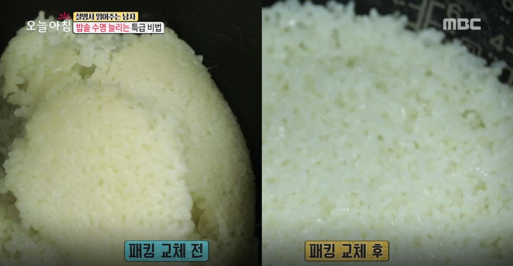 실제로 색이 변하고 냄새나는 고무 패킹을 새것으로 교체해봤다. 취사를 해보니 밥의 색깔부터 확연히 달라졌다. 밥맛이 제대로 되살아난 것. 이처럼 증기 배출구를 철핀으로 청소하고, 고무 패킹을 주기적으로 교체한다면 밥솥의 수명을 늘릴 수 있다.