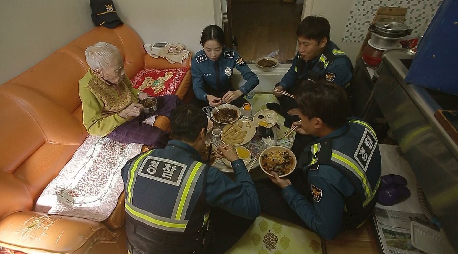 그러나 할머니의 반응은 기대와 달랐다. 할머니는 “나는 안 가”라며 이들의 제안을 거절한다. 이에 당황한 오대환 순경과 이청아 순경이 계속 설득에 나서자 “창피해서 못 나가”, “눈을 꼭 감고 어딜 가”냐며 속마음을 털어놓는 할머니. 앞이 보이시지 않는 할머니의 말씀에 오대환 순경과 이청아 순경은 가슴이 먹먹해진다. 결국 신현준, 오대환, 강경준 순경이 짜장면을 포장해 오고, 할머니 댁에서 모두 함께 식사한다. 할머니는 연신 “아이고 맛있다”라고 하시며 짜장면을 맛있게 드시고, 순경 4인방은 그런 할머니를 보며 행복해한다.