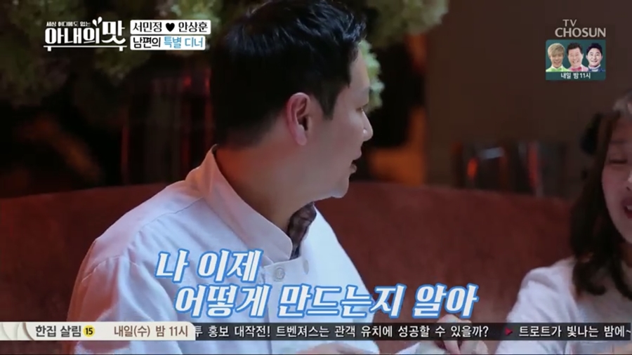 서민정-안상훈 부부는 뉴욕타임지 2스타를 받은 곳이자 데이비드 베컴, 마돈나, 레이디 가가, 레오나르도 디카프리오 등의 유명인들이 찾는 레스토랑의 메인 셰프로 활약 중인 지인으로부터 직접 초대를 받았다. 서민정은 같은 한국인으로서 향수병을 겪었을 셰프의 아내와 동질감을 나눴고, 안상훈은 셰프와 함께 ‘트러플 곱빼기 파스타&피자’를 만들어 아내들을 위한 식탁에 내놨다. 자신감이 생긴 안상훈이 “이제 집에서도 할 수 있다”고 하자, 서민정이 “하루 배워서 못 한다”며 티격태격하는 케미로 웃음을 자아냈고, 또 한편으로는 서민정이 진솔하게 꺼낸 “향수병이 삶의 일부임을 인정한다”는 말이 패널들의 마음을 울렸다.