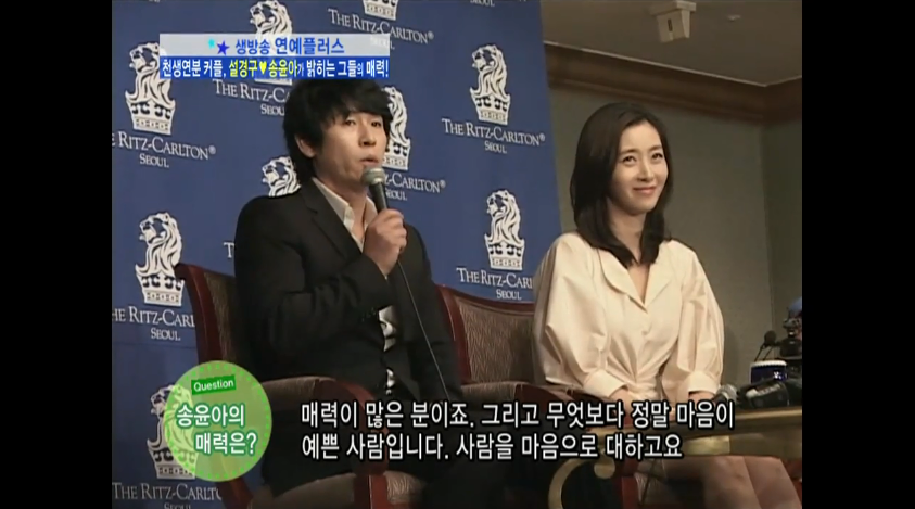 이어 실제 두 사람의 결혼 발표 기자회견 장면이 나온다. 설경구는 송윤아에 대해 “마음이 예쁜 사람”이라고 말했고 송윤아는 “누가 먼저 사귀자, 결혼하자 할 것도 없이 자연스럽게 이렇게 됐다”고 말했다.