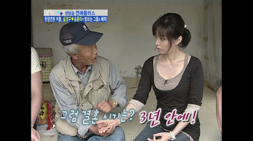 재미있는 것은 그 다음의 영상이다. 결혼 발표로부터 3년 전, 송윤아는 ‘느낌표’에 출연해 손금을 보는 할아버지를 만났다. 이 할아버지는 송윤아의 손금을 보고 “같은 연예인끼리 만나야 된다”며 “지금 2006년이니까 3년 안에 결혼해야 한다”고 말했다. 당시 주변 사람들은 모두 말도 안 된다며 웃었지만, 할아버지의 말은 현실이 됐다.