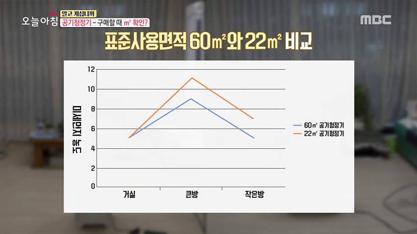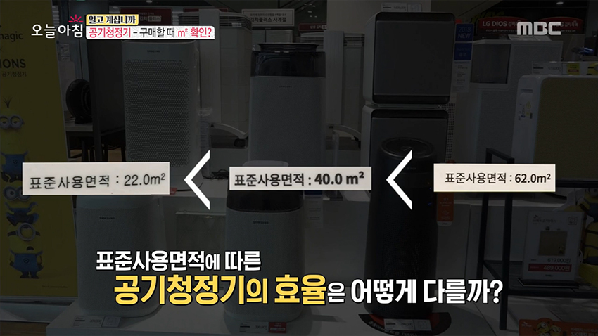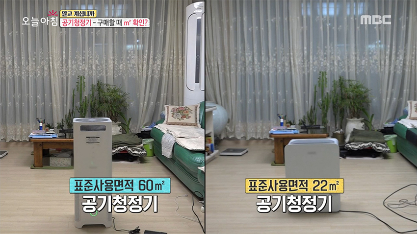2. 동일한 조건으로 실험한 결과 '표준사용면적'이 큰 제품이 효과가 더 좋은 반면 전력 소비량은 증가하는 수치를 보여줬다.