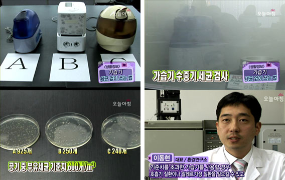 가습기 내부 상태를 검사해 본 결과 대장균과 황색포도상구균은