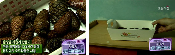 마른 솔방울을 1~2시간 물에 담갔다가 오므라들면 사용한다.