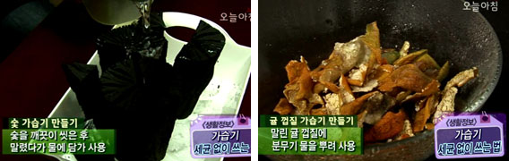 숯을 깨끗이 씻은 후 말렸다가 물에 담가 사용하면 좋다.