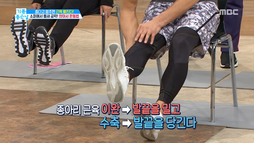 * 종아리 근육 이완(발끝을 민다), 수축(발끝을 당긴다)