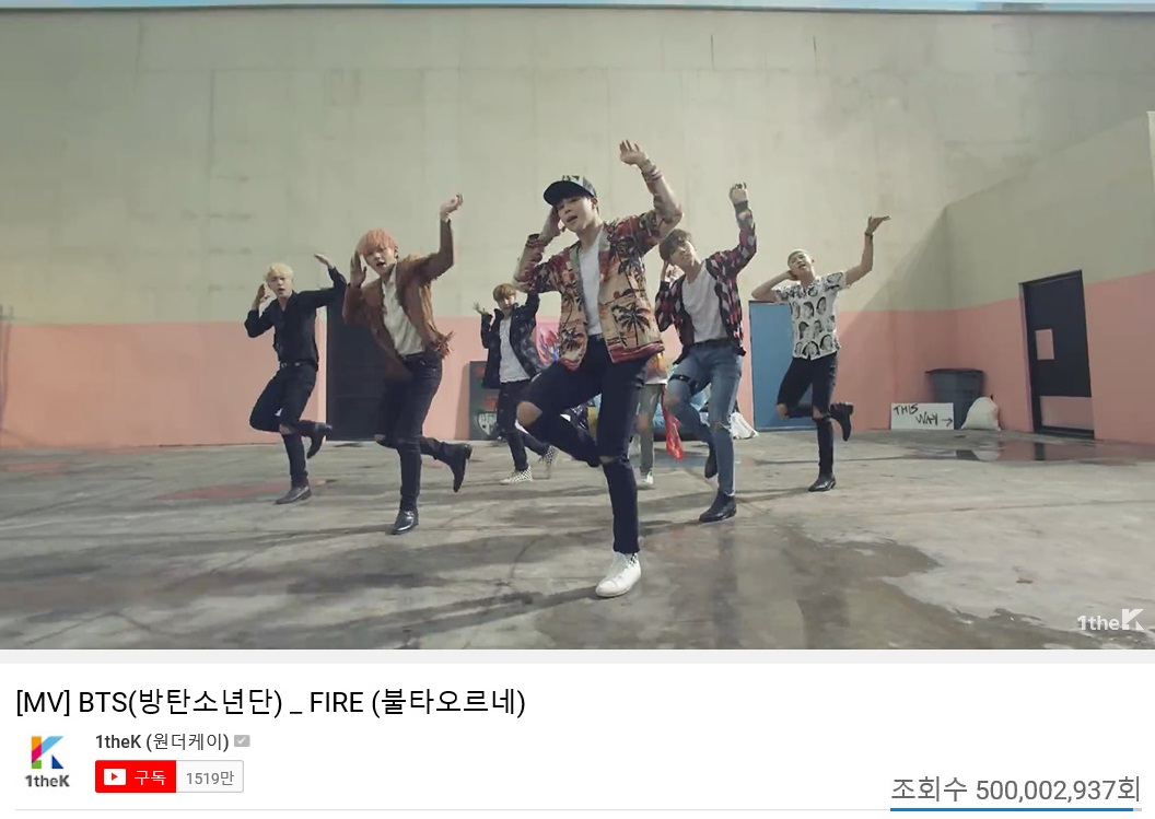 이는 원더케이(1theK) 유튜브 계정에 올라온 ‘불타오르네’ 뮤직비디오의 단독 조회수로, 방탄소년단의 소속사 빅히트 엔터테인먼트 공식 계정의 뮤직비디오 조회수와 합산하면 5억 1534만 건을 넘는다.